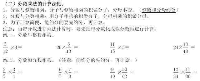 小学数学 六年级必会知识点分数乘法知识点汇总与复习 建议